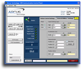 To create a driver set capable of exposing the features available in USB based motion control systems offered by Arcus Technology. The driver must consist of a series of robust, yet intuitive VI's allowing even the novice LabVIEW developer to integrate Arcus product with ease.
